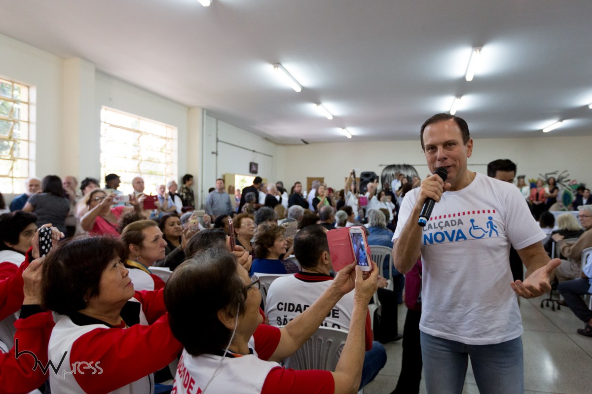O prefeito João Doria participa de cerimônia em comemoração ao Dia Internacional do Idoso, no Polo Cultural da Terceira Idade, no bairro do Cambuci, zona sul de São Paulo (SP), neste domingo (01).