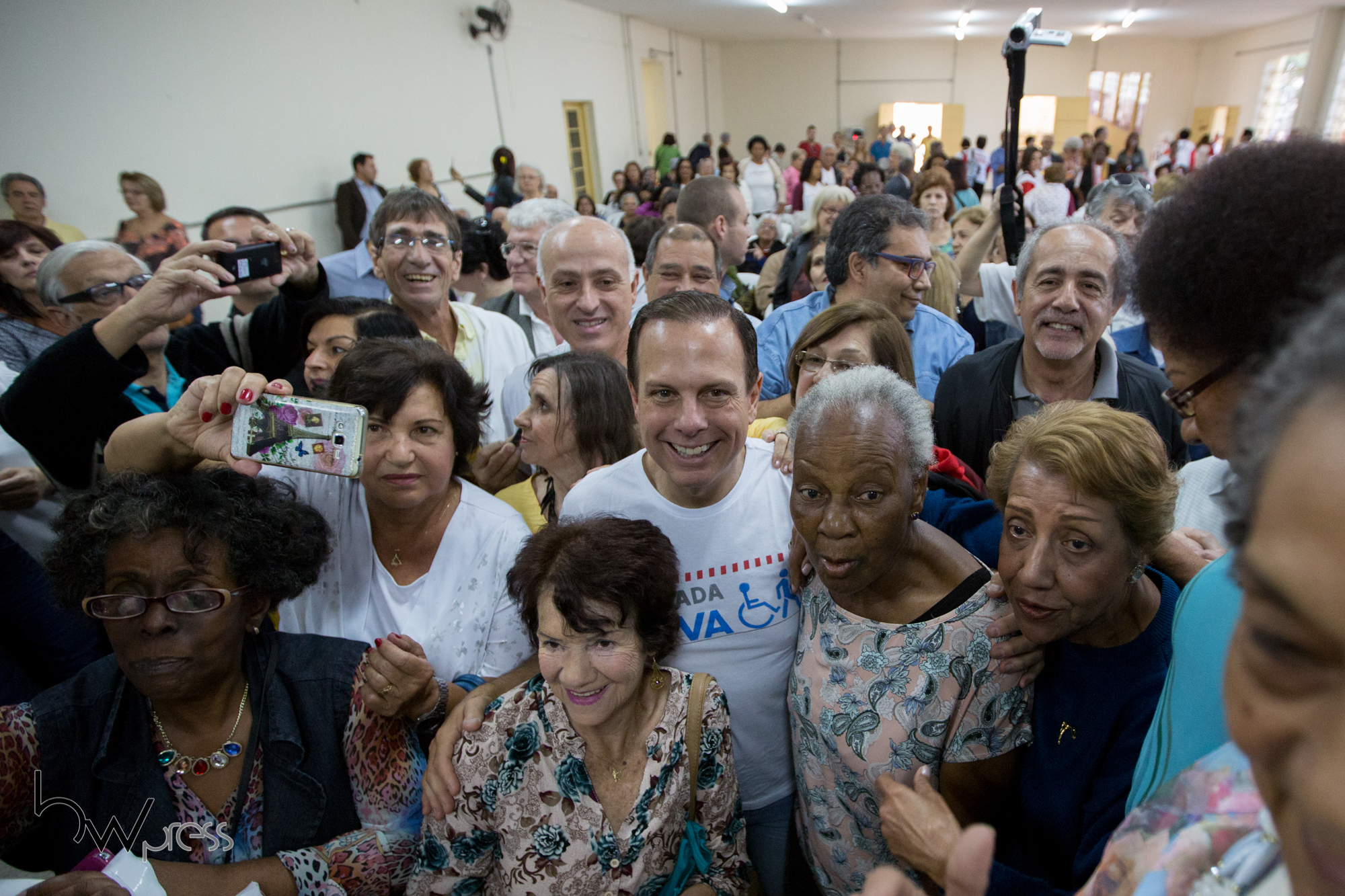 O prefeito João Doria participa de cerimônia em comemoração ao Dia Internacional do Idoso, no Polo Cultural da Terceira Idade, no bairro do Cambuci, zona sul de São Paulo (SP), neste domingo (01).