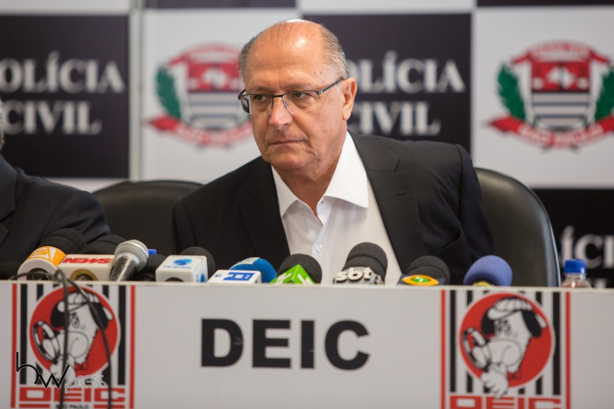 Geraldo Alckmin, Governador de São Paulo, participa de entrevista coletiva na sede do DEIC, na zona norte de São Paulo (SP), neste terça feira (03).