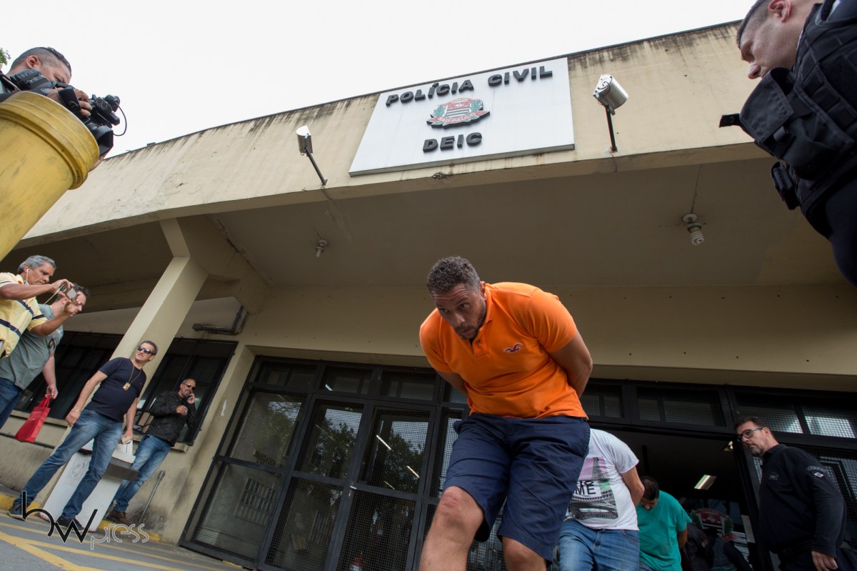 Presos em operação da Polícia Civil, deixam a sede do DEIC na zona norte de São Paulo (SP), na tarde desta terça-feira (03) em direção ao Fórum Criminal da Barra Funda, para audiência de custódia.