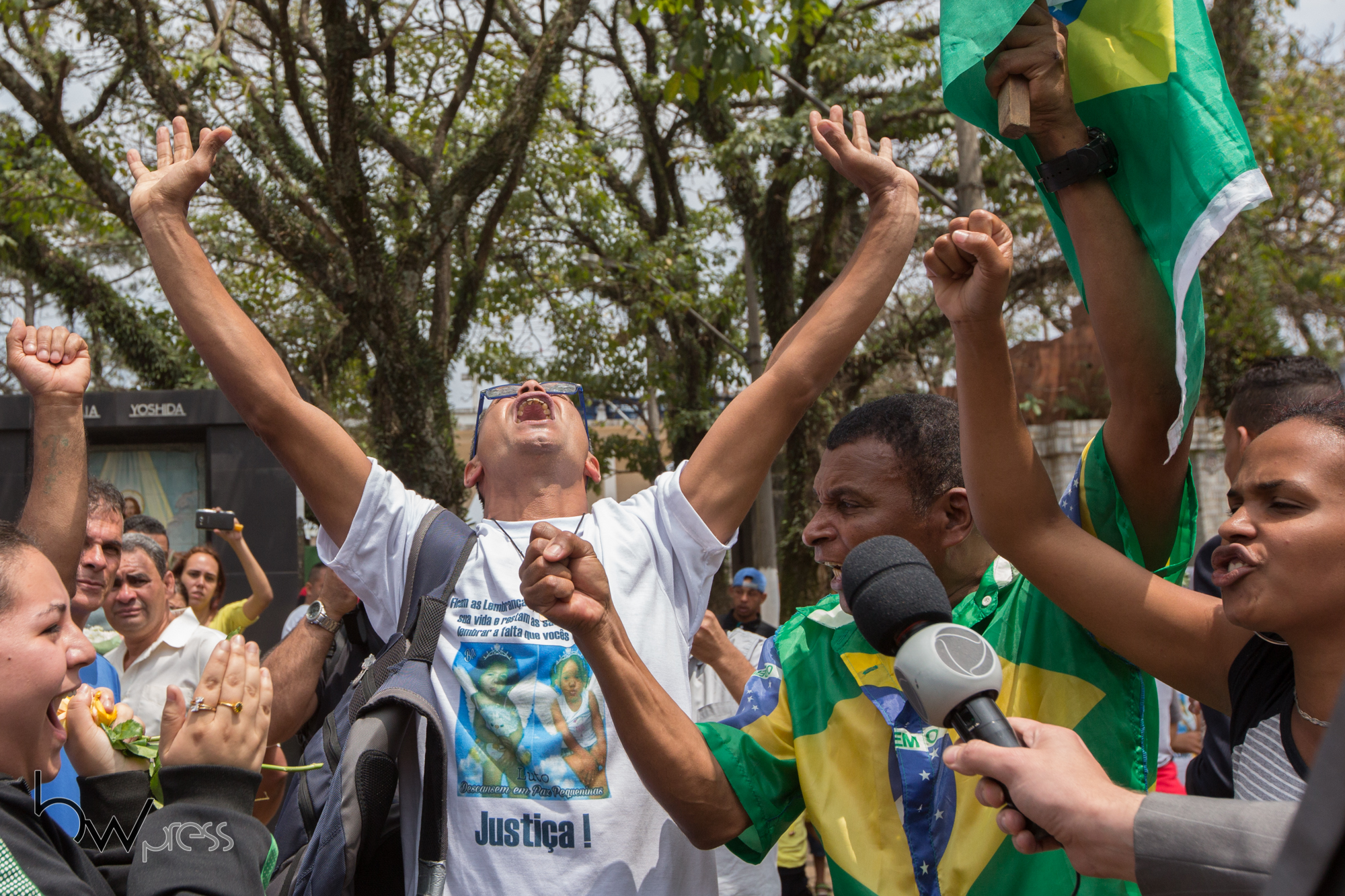 Alan Porto, pai de Adrielly Mel Servo Porto, comemora ao receber a notícia da prisão dos assassinos de sua filha e de Beatriz Moreira dos Santos, no Cemitério da Saudade, na zona leste de São Paulo (SP), neste sexta feira (20). As meninas haviam sumido em setembro e foram encontradas mortas em uma Van, no dia 12 de outubro, na zona leste de São Paulo (SP).