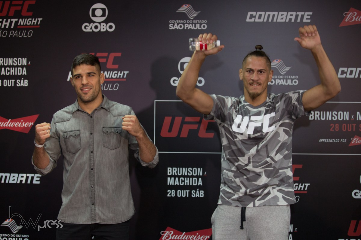Vicente Luque (E) e Niko Price, lutadores de UFC participam do “media day” no Hotel Matsubara, na zona sul de São Paulo (SP), nesta quinta feira (25). O evento é parte dos preparativos para o UFC Fight Night São Paulo, que acontece no Ginásio do Ibirapuera, no próximo sábado (28).