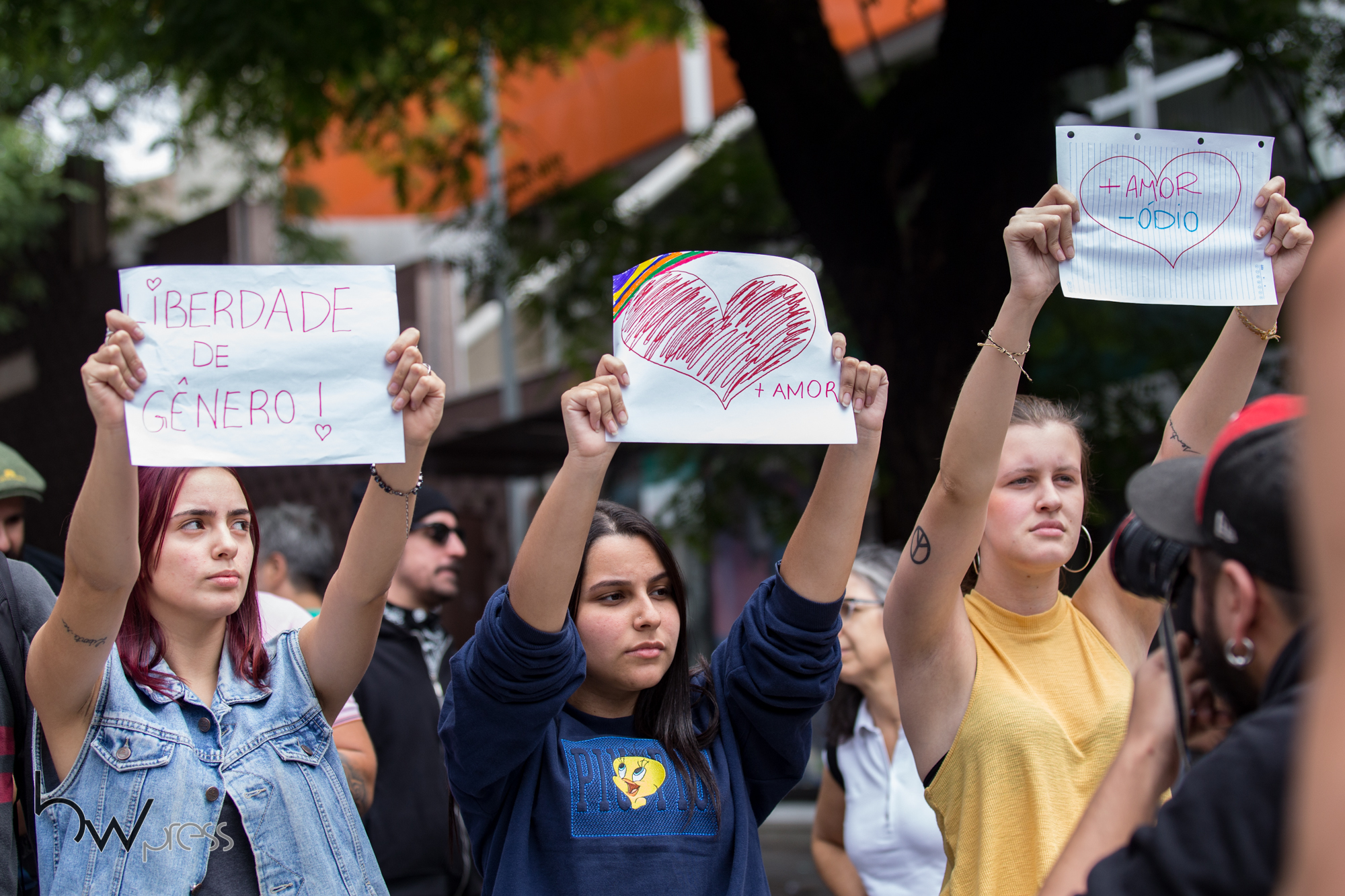 Grupos a favor e contra a filósofa norte americana Judith Butler, fazem manifestação durante evento no Sesc Pompéia, na zona oeste de São Paulo (SP), na manhã desta terça feira (07).