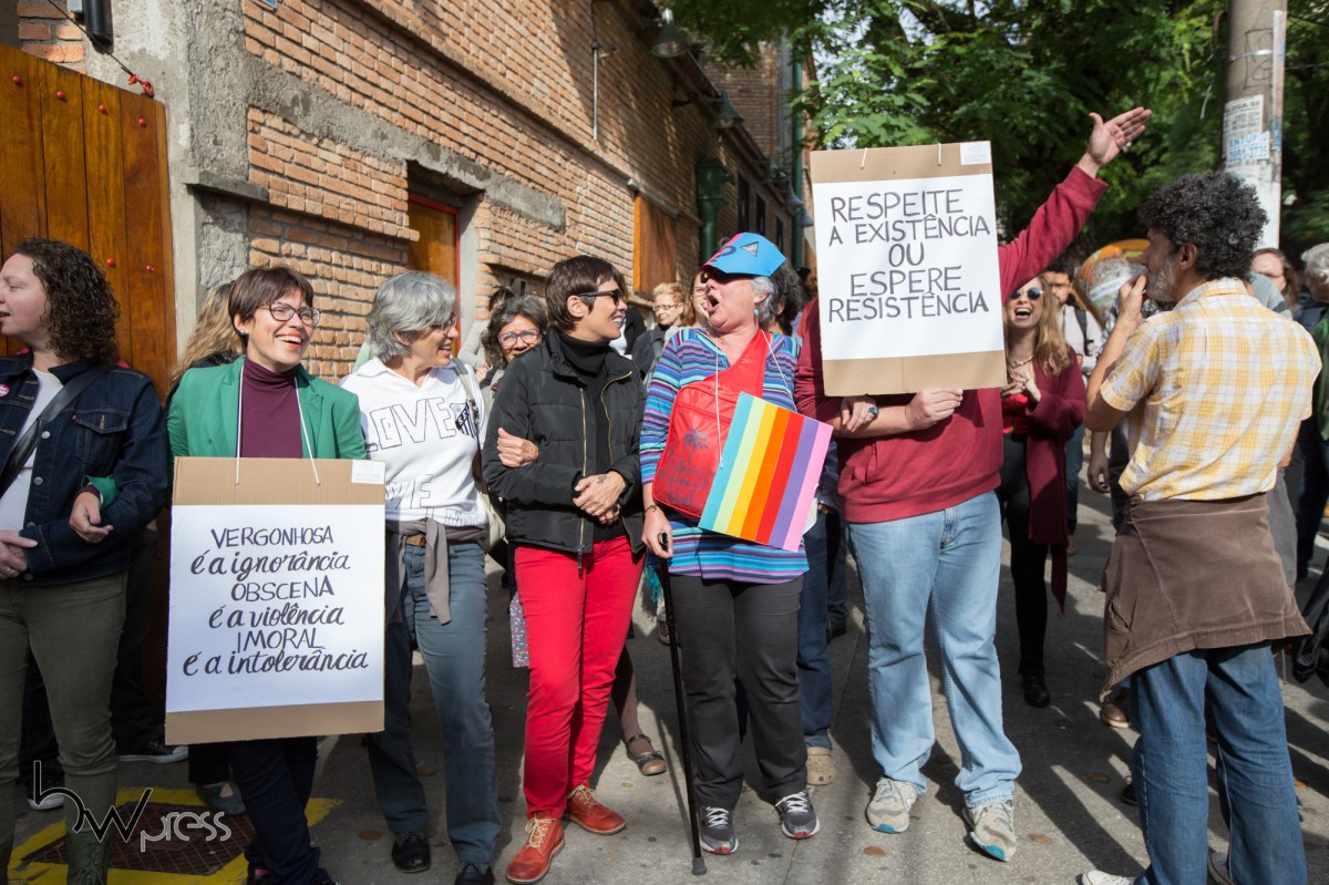 Grupos a favor e contra a filósofa norte americana Judith Butler, fazem manifestação durante evento no Sesc Pompéia, na zona oeste de São Paulo (SP), na manhã desta terça feira (07).