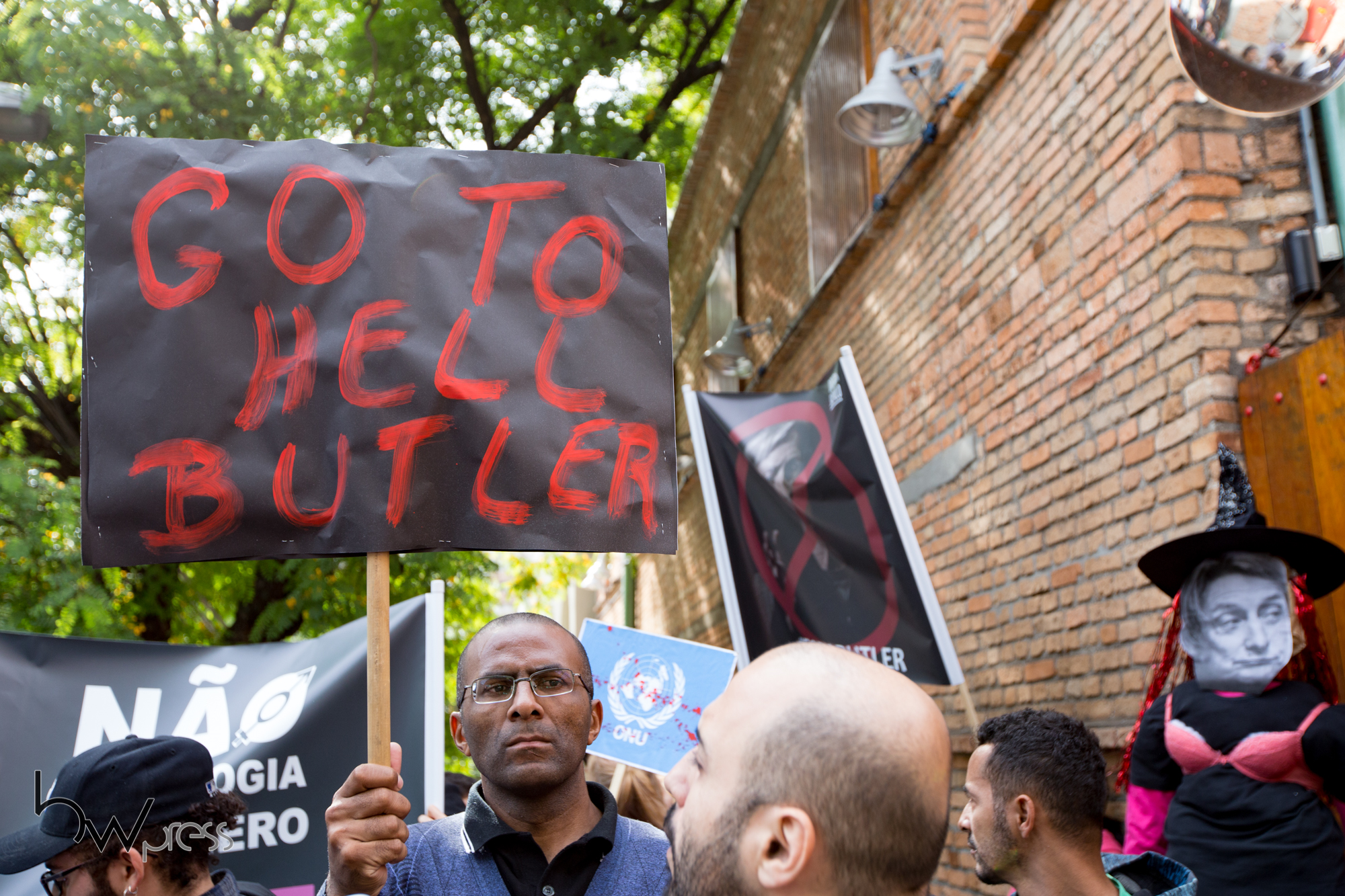 Grupos a favor e contra a filósofa norte americana Judith Butler, fazem manifestação durante evento no Sesc Pompéia, na zona oeste de São Paulo (SP), na manhã desta terça feira (07).