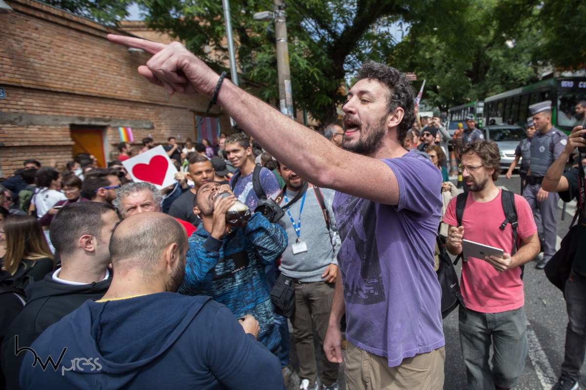Grupos a favor e contra a filósofa norte americana Judith Butler, fazem manifestação durante evento no Sesc Pompéia, na zona oeste de São Paulo (SP), na manhã desta terça feira (07).