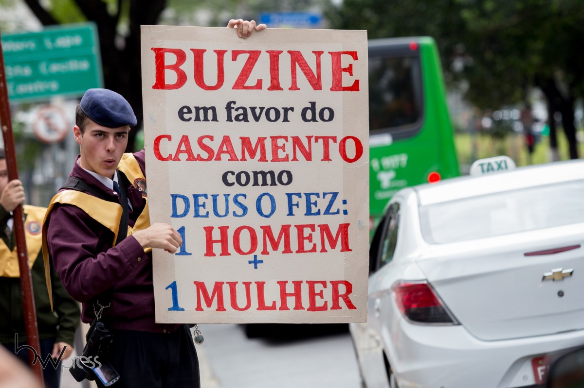 Grupos a favor e contra a filósofa norte americana Judith Butler, fazem manifestação durante evento no Sesc Pompéia, na zona oeste de São Paulo (SP), na manhã desta terça feira (07).