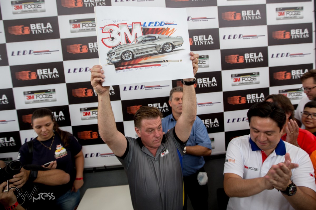 O designer americano Chip Foose, astro do programa Overhaulin’, transmitido no Brasil pelo Discovery, participa de evento promocional em uma oficina especializada em São Paulo, neste sábado (18).