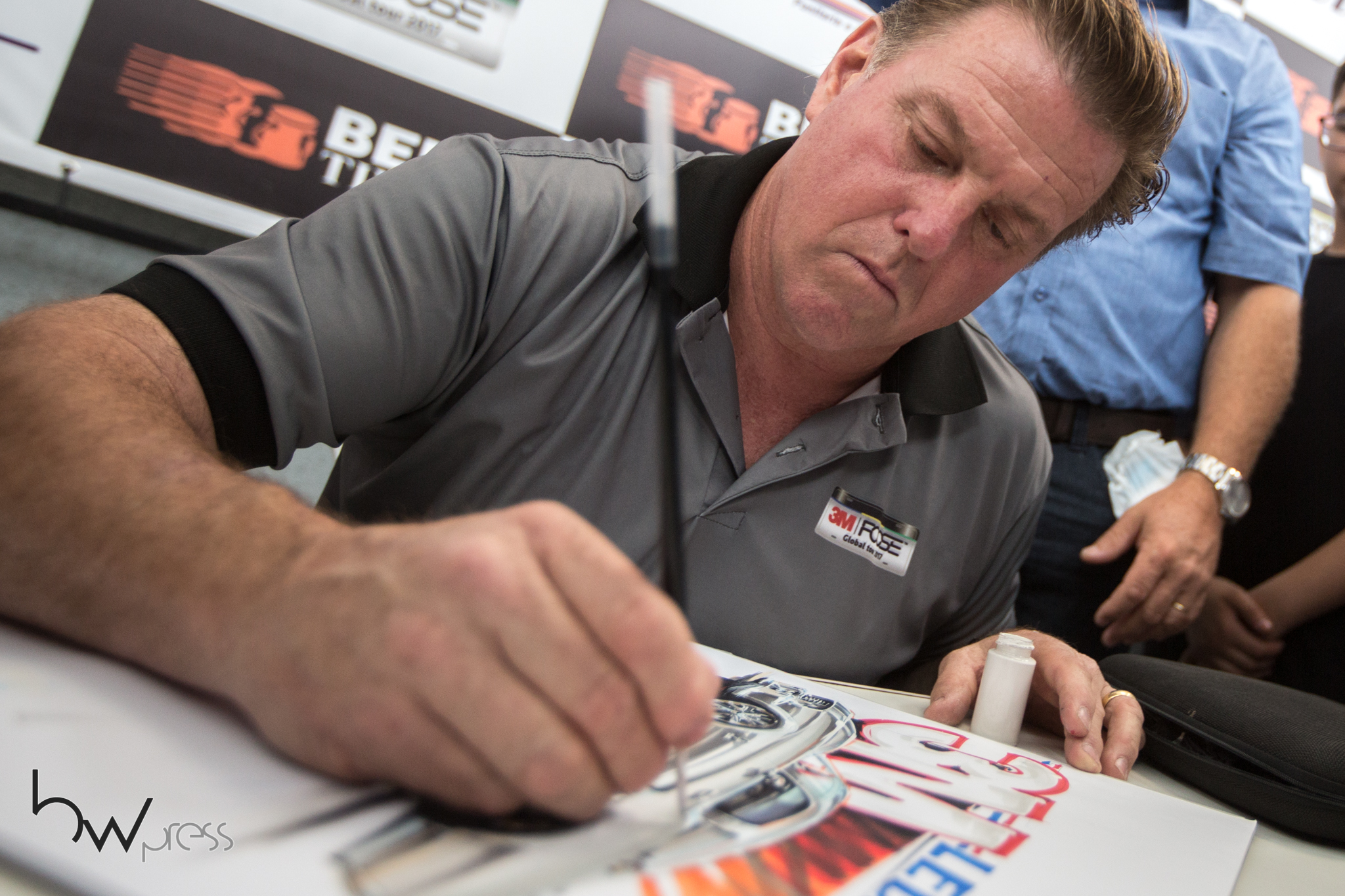 O designer americano Chip Foose, astro do programa Overhaulin’, transmitido no Brasil pelo Discovery, participa de evento promocional em uma oficina especializada em São Paulo, neste sábado (18).