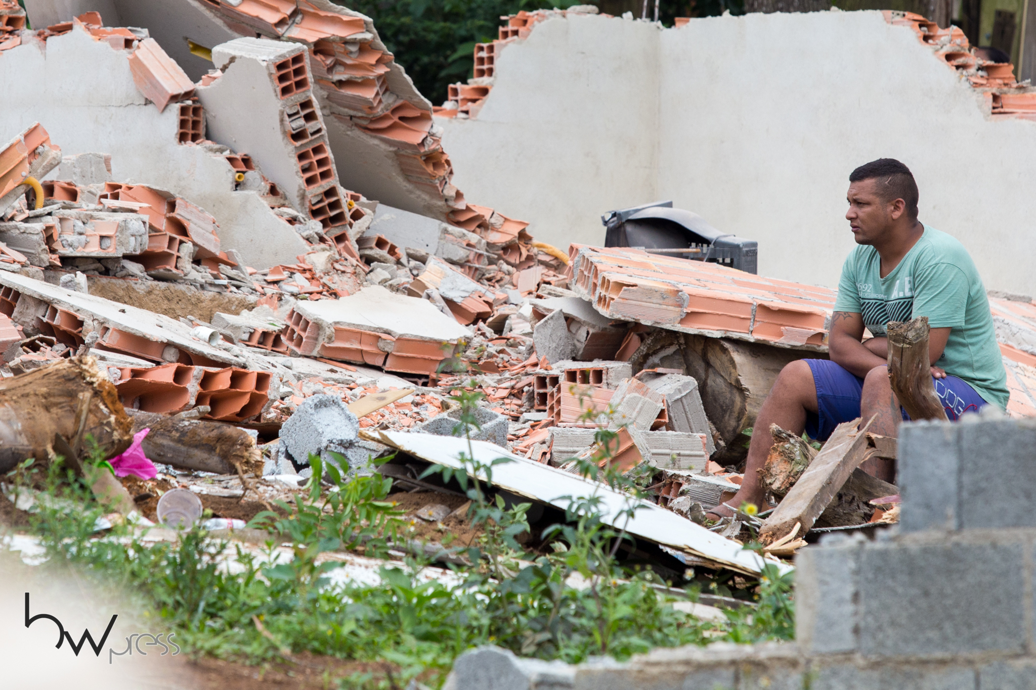 Policiais Militares acompanham a reintegração de posse de uma área na Avenida Bento Guelfi, no Jardim Iguatemi, zona leste de São Paulo (SP), na manhã desta terça-feira (21). Cerca de 50 famílias que viviam no local, tiveram seus pertences levados para um galpão e as casas e barracos foram derrubados.