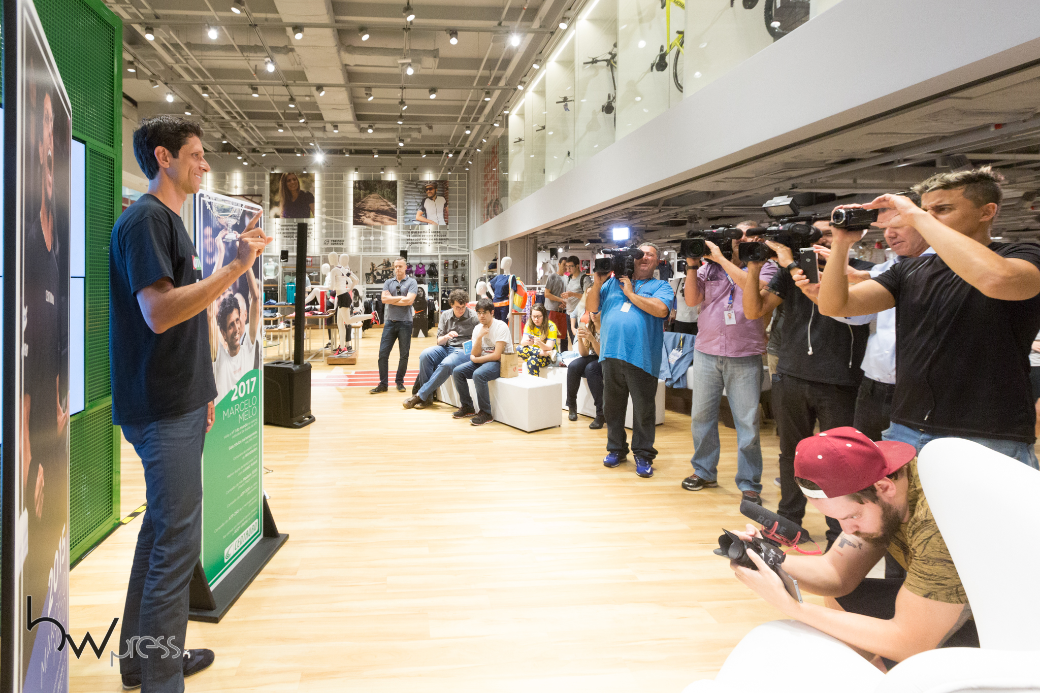 O tenista Marcelo Melo, número 1 do mundo concede entrevista coletiva para fazer um balanço da temporada, em uma loja no Shopping Anália Franco, na zona leste de São Paulo (SP), nesta quarta-feira (06).