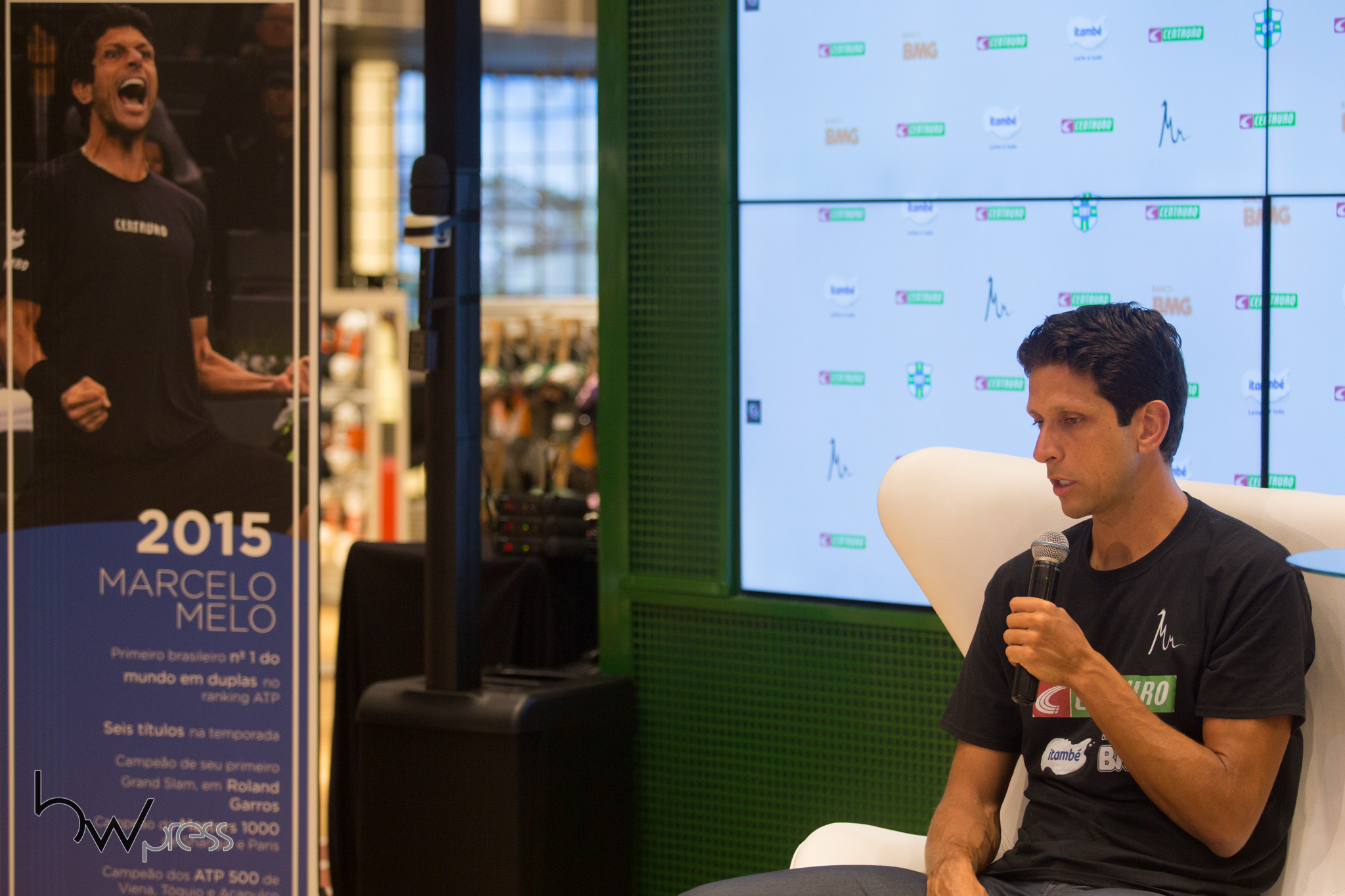 O tenista Marcelo Melo, número 1 do mundo concede entrevista coletiva para fazer um balanço da temporada, em uma loja no Shopping Anália Franco, na zona leste de São Paulo (SP), nesta quarta-feira (06).