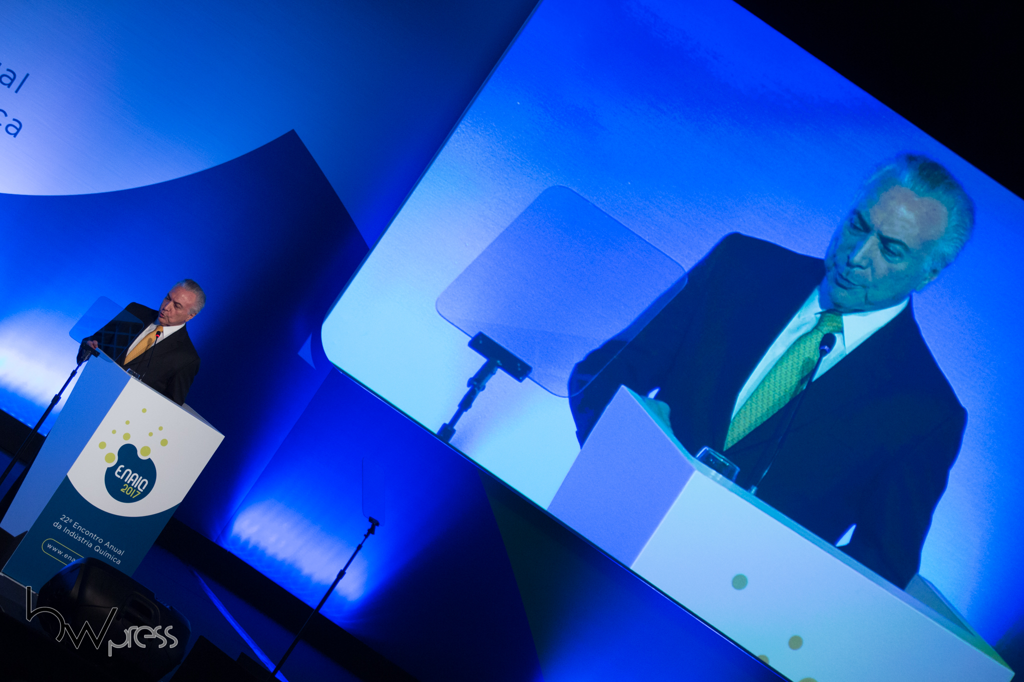 O presidente Michel Temer participa do evento de abertura do 22º Encontro Anual da Indústria Química – ENAIQ, no World Trade Center, na zona sul de São Paulo (SP), nesta sexta-feira (08).