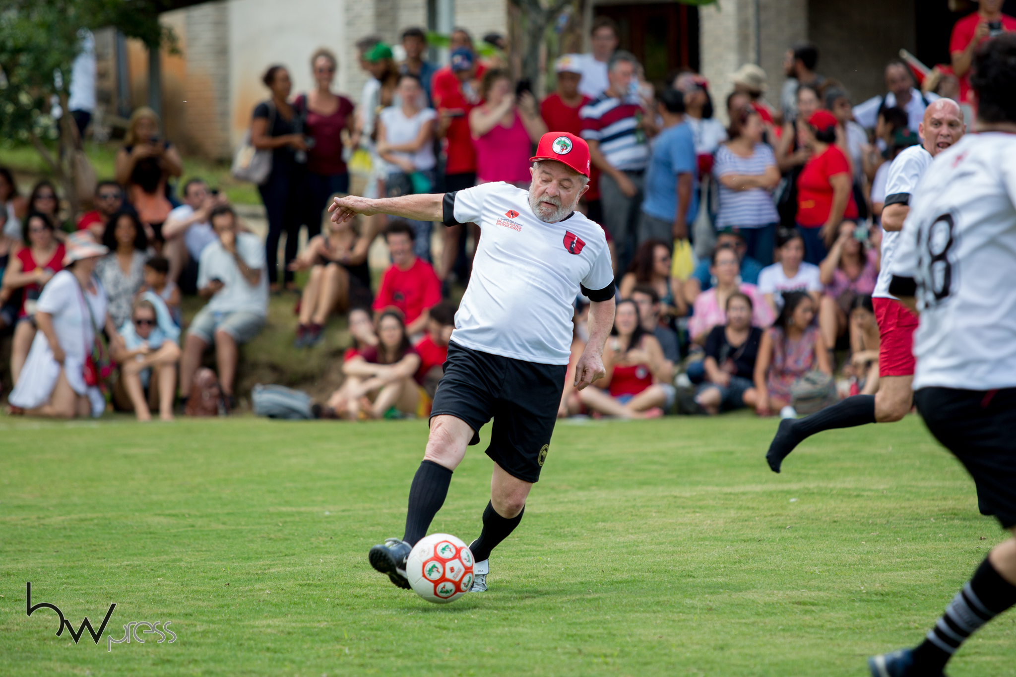 O ex presidente Luiz Inácio Lula da Silva, durante inauguração do Campo Doutor Sócrates Brasileiro, em Guararema (SP), neste sábado (23). Construído na área da Escola Nacional Florestan Fernandes, espaço de formação política do Movimento dos Trabalhadores Sem Terra – MST, homenageia o jogador morto em 2011. A obra é fruto de financiamento coletivo e foi executada por voluntários do MST.