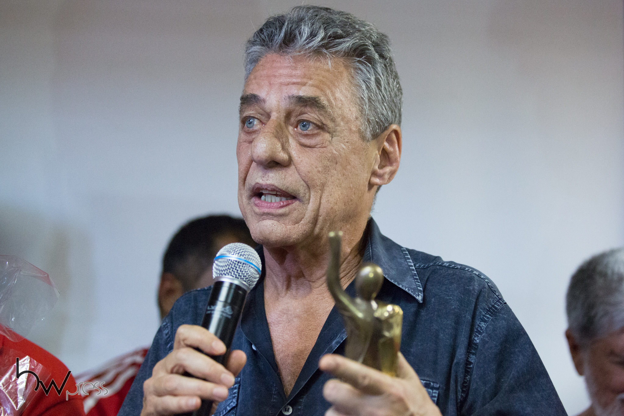 O cantor e compositor Chico Buarque de Holanda recebe o prêmio CUT Democracia e Liberdade Sempre, pelo seu envolvimento com as causas democráticas, durante a inauguração do Campo Doutor Sócrates Brasileiro, em Guararema (SP), neste sábado (23). Construído na área da Escola Nacional Florestan Fernandes, espaço de formação política do Movimento dos Trabalhadores Sem Terra – MST, homenageia o jogador morto em 2011. A obra é fruto de financiamento coletivo e foi executada por voluntários do MST.