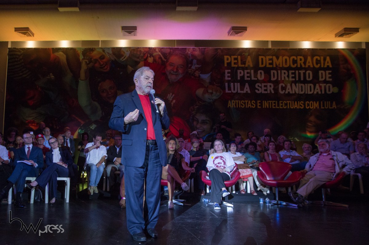 Ato em defesa do ex presidente Luiz Inácio Lula da Silva, na Casa de Portugal, região central de São Paulo (SP), na noite desta quinta feira (18). Participaram do evento, artistas, intelectuais e militantes.