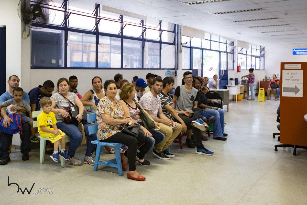 Movimentação no Centro de Saúde-Escola Samuel Pessoa, no bairro do Butantã, zona oeste de São Paulo, na tarde desta quinta feira (18). 800 senhas são distribuídas por dia para a vacinação contra a febre amarela.