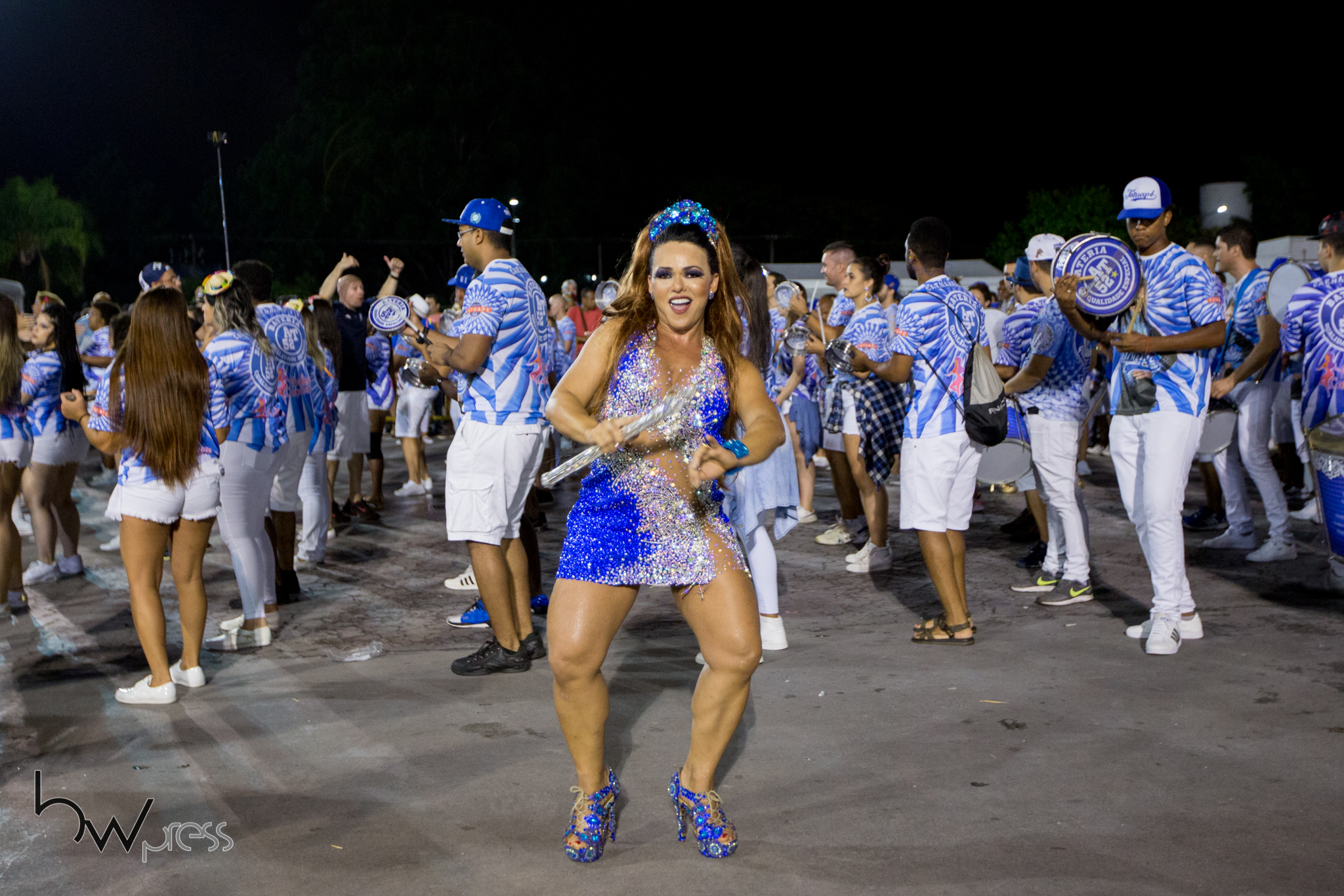Andréa Capitulino, Rainha de Bateria, durante esaio técnico para o Carnaval 2018 da escola de samba Acadêmicos do Tatuapé, no Sambódromo do Anhembi em São Paulo (SP), neste domingo (21). Os desfiles do grupo especial acontecem nos dias 09 e 10 de fevereiro.