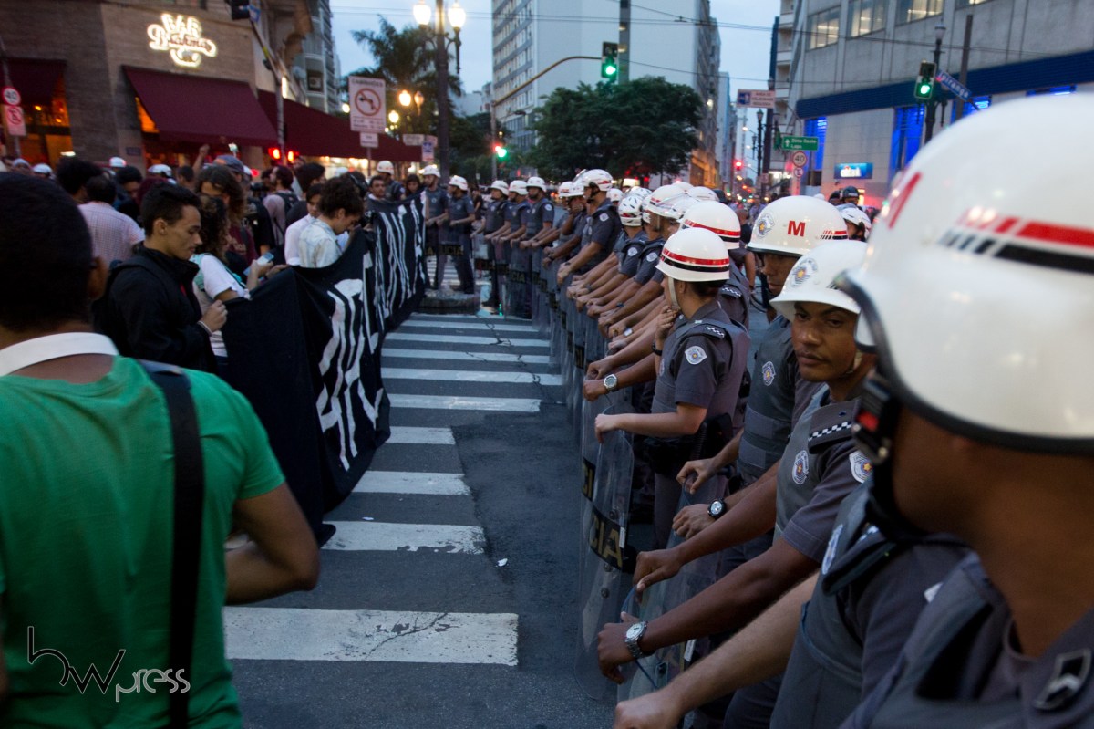 Protesto contra o aumento das passagens de ônibus, trens e metrô, organizado pelo MPL – Movimento Passe Livre, no centro de São Paulo (SP), nesta terça feira (23).