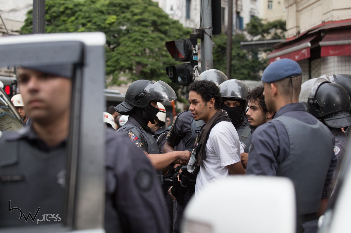 Protesto contra o aumento das passagens de ônibus, trens e metrô, organizado pelo MPL – Movimento Passe Livre, no centro de São Paulo (SP), nesta terça feira (23).