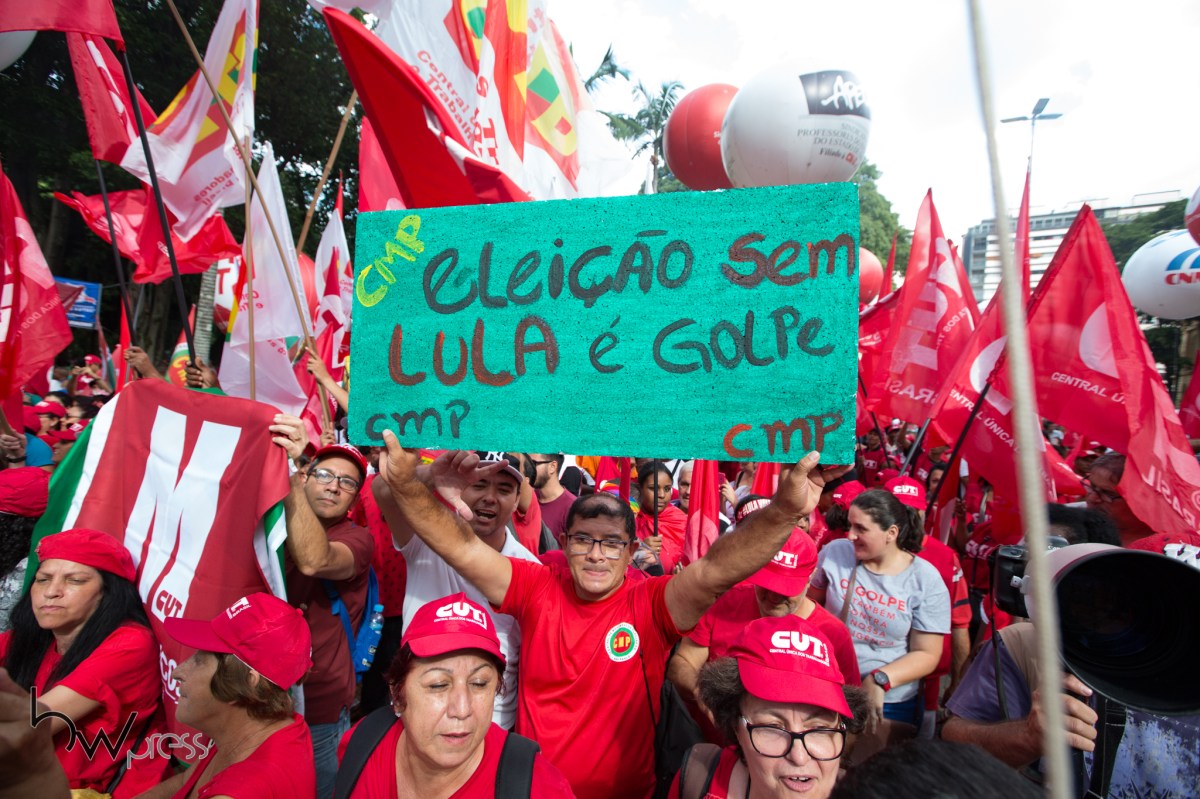 Manifestação em apoio ao ex Presidente Luiz Inácio Lula da Silva, na Praça da República, região central de São Paulo (SP), nesta quarta feira (24).