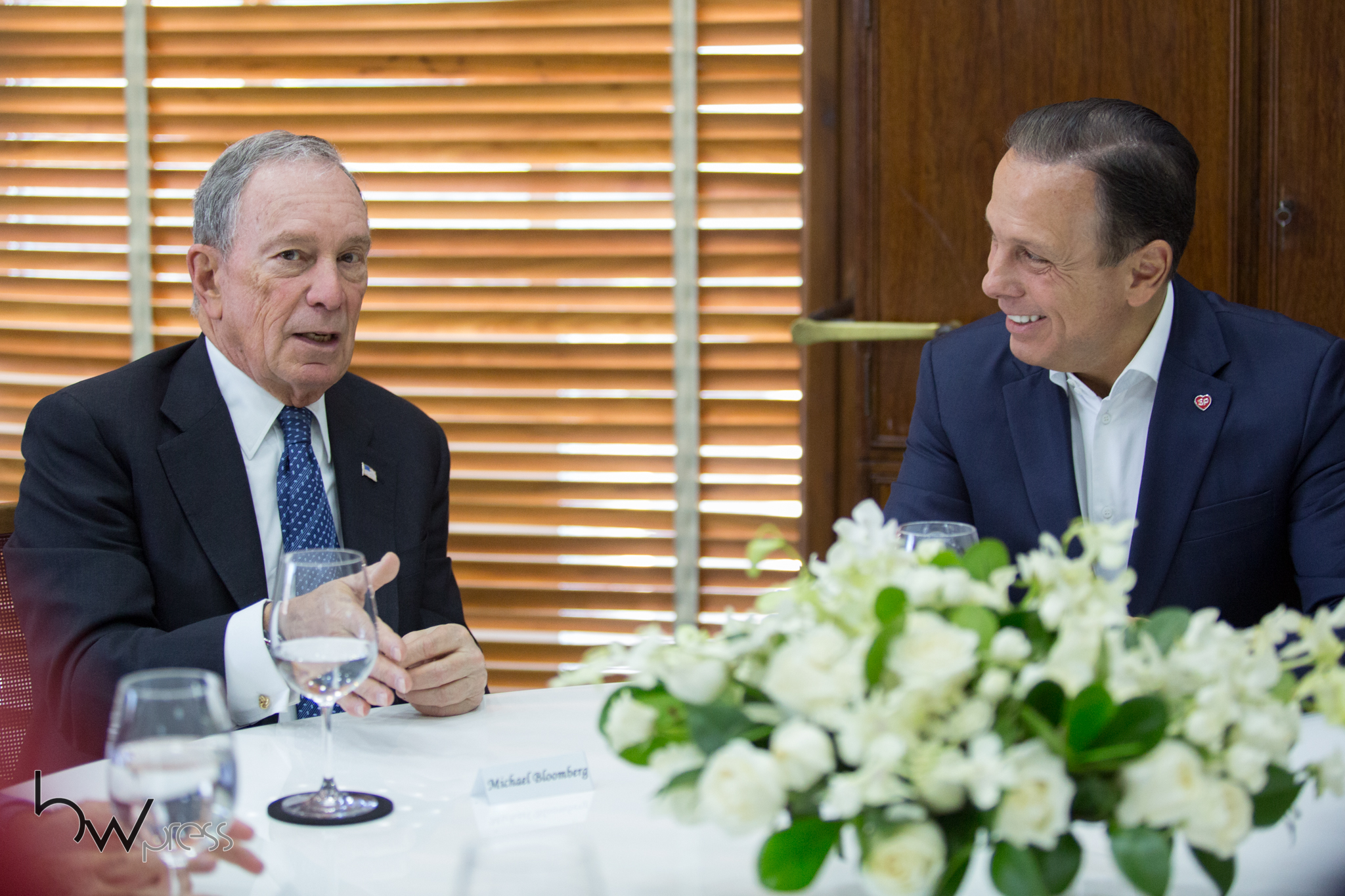 João Doria, prefeito de São Paulo e Michael Bloomberg, ex prefeito de Nova York mantém encontro na sede da prefeitura, na região central de São Paulo (SP), nesta quarta-feira (31), onde conversaram sobre mobilidade urbana.