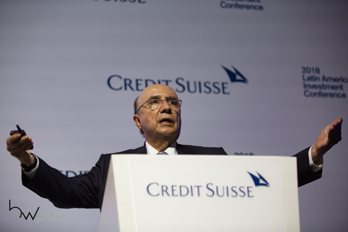 Henrique Meirelles, Ministro da Fazenda, participa da 5ª Conferência de Investimentos da América Latina 2018, organizada pelo Banco Credit Suisse, nesta 3ª feira (30), no Hotel Grand Hyatt, em São Paulo (SP).