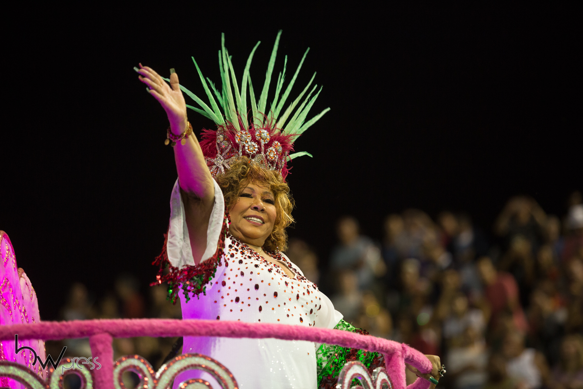 A cantora Alcione, durante o desfile da escola de samba Mocidade Alegre, pelo grupo especial, no Sambódromo do Anhembi em São Paulo (SP), neste sábado (10).