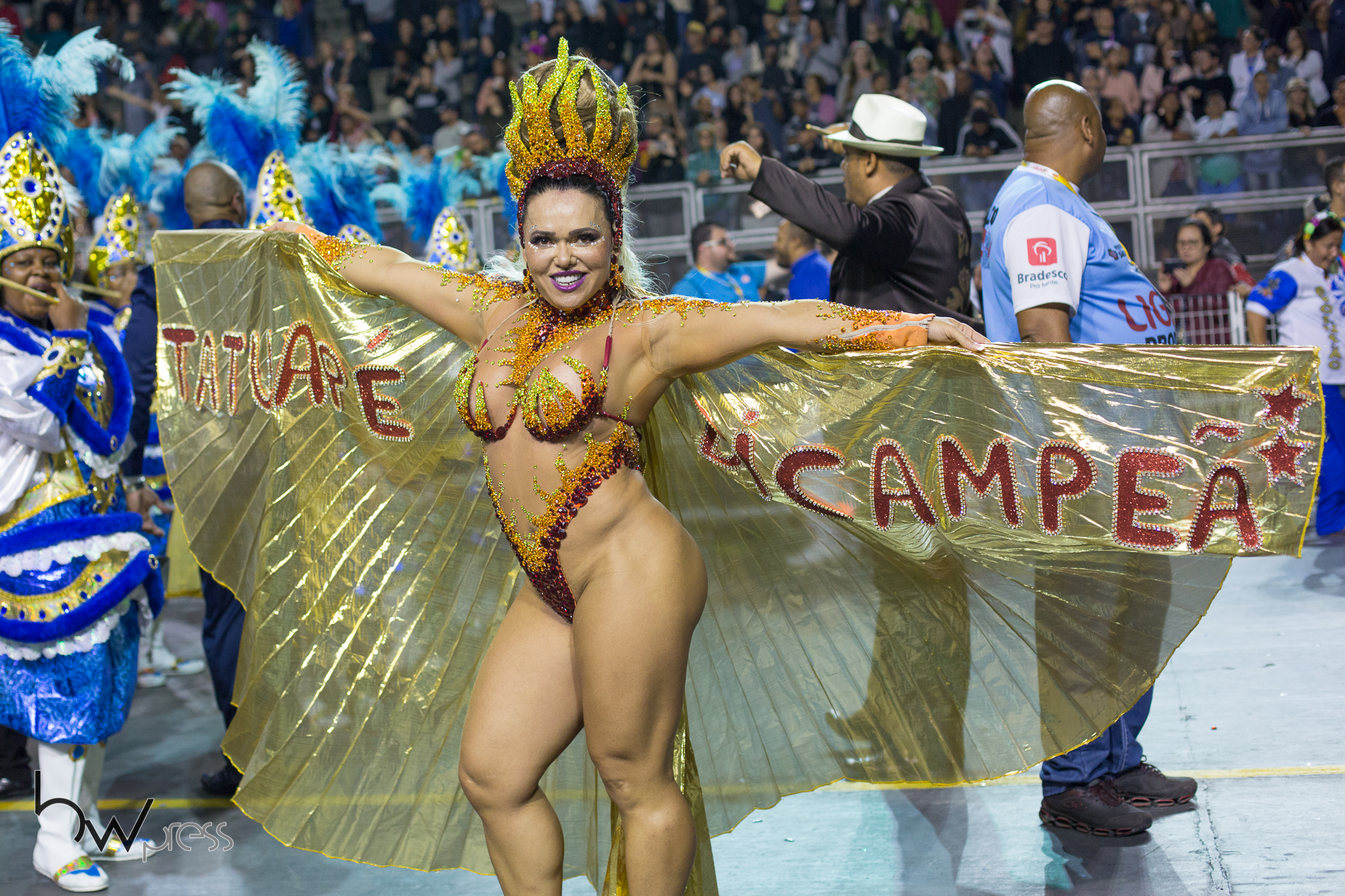 Andréa Capitulino, Rainha de Bateria da escola de Samba Acadêmicos do Tatuapé, durante desfile das campeãs do Carnaval 2018, no Sambódromo do Anhembi, em São Paulo (SP), nesta sexta feira (16).