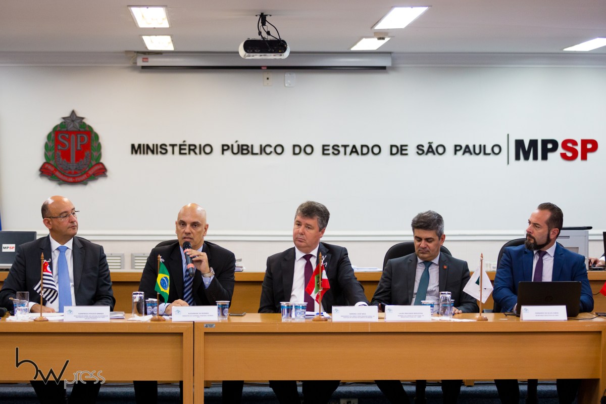 Alexandre de Moraes, Ministro do STF, participa de reunião do Conselho Nacional dos Procuradores Gerais de Justiça, na sede da Procuradoria Geral de Justiça, em São Paulo (SP), nesta segunda feira (19).