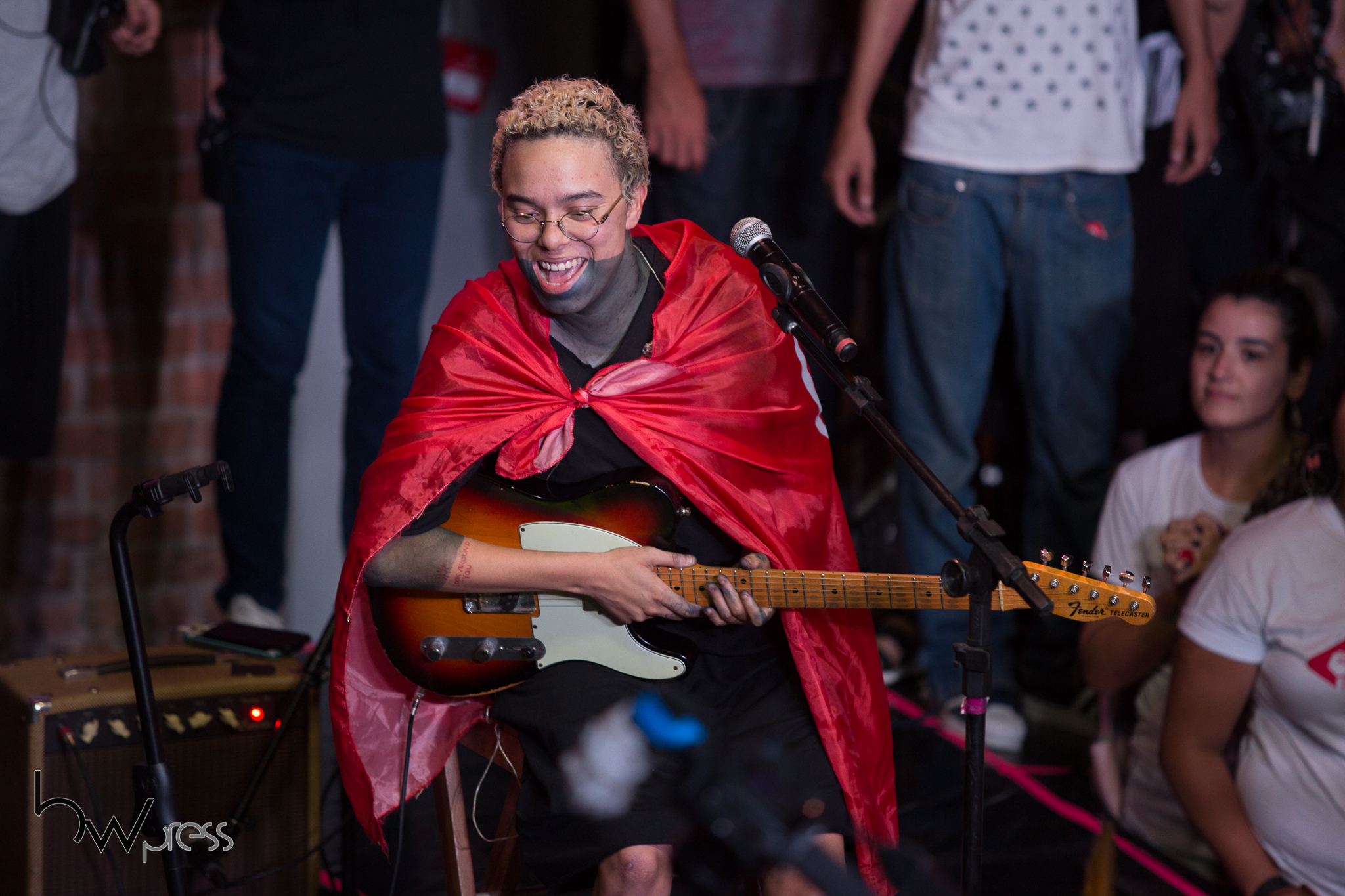 Maria Gadú durante evento de lançamento da pré candidatura de Guilherme Boulos, líder do Movimento dos Trabalhadores Sem Teto (MTST), na Casa das Caldeiras, em São Paulo (SP), neste sábado (03). Boulos se filiará ao PSOL e terá a líder indígena Sonia Guajajara como vice na chapa.
