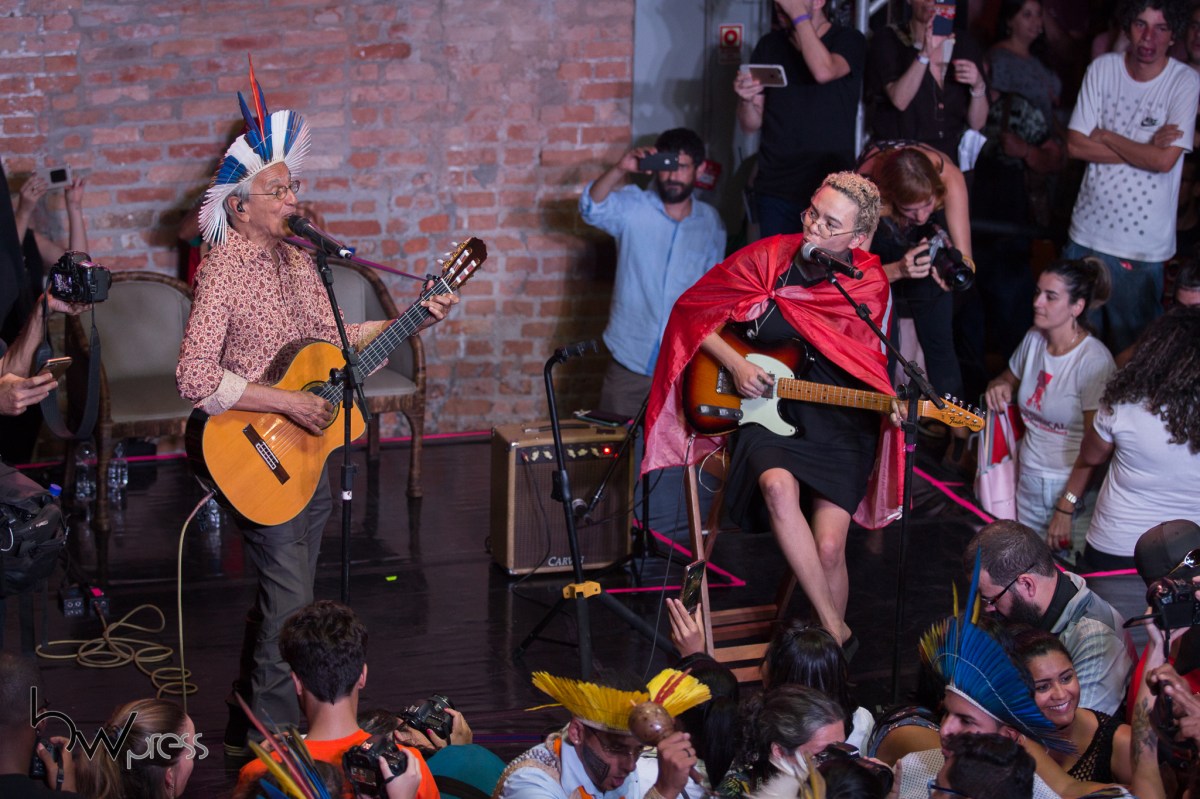Caetano Veloso e Maria Gadú durante evento de lançamento da pré candidatura de Guilherme Boulos, líder do Movimento dos Trabalhadores Sem Teto (MTST), na Casa das Caldeiras, em São Paulo (SP), neste sábado (03). Boulos se filiará ao PSOL e terá a líder indígena Sonia Guajajara como vice na chapa.