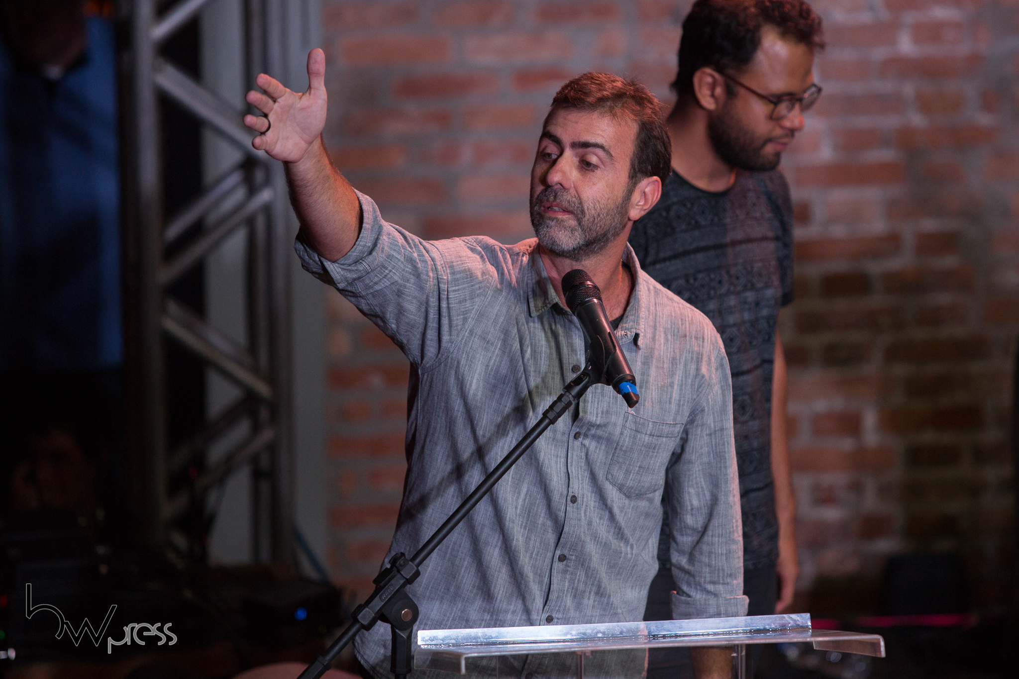 O deputado Marcelo Freixo durante evento de lançamento da pré candidatura de Guilherme Boulos, líder do Movimento dos Trabalhadores Sem Teto (MTST), na Casa das Caldeiras, em São Paulo (SP), neste sábado (03). Boulos se filiará ao PSOL e terá a líder indígena Sonia Guajajara como vice na chapa.