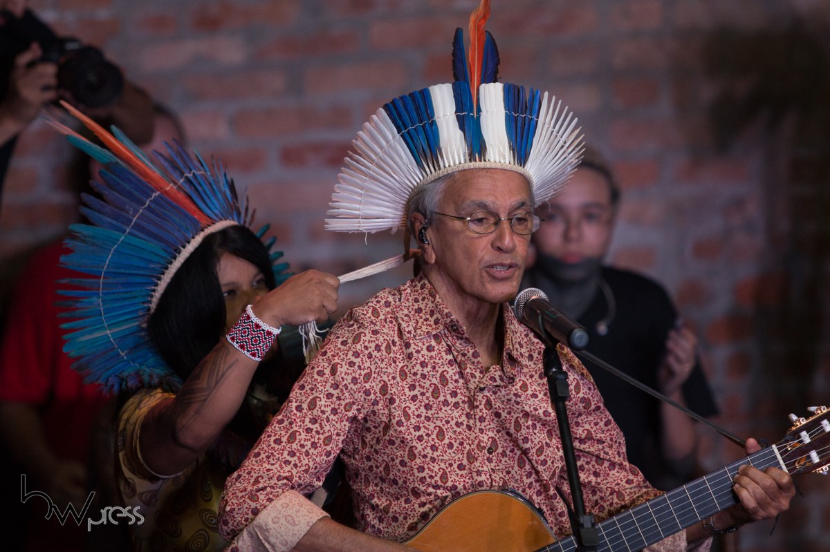 Caetano Veloso durante evento de lançamento da pré candidatura de Guilherme Boulos, líder do Movimento dos Trabalhadores Sem Teto (MTST), na Casa das Caldeiras, em São Paulo (SP), neste sábado (03). Boulos se filiará ao PSOL e terá a líder indígena Sonia Guajajara como vice na chapa.