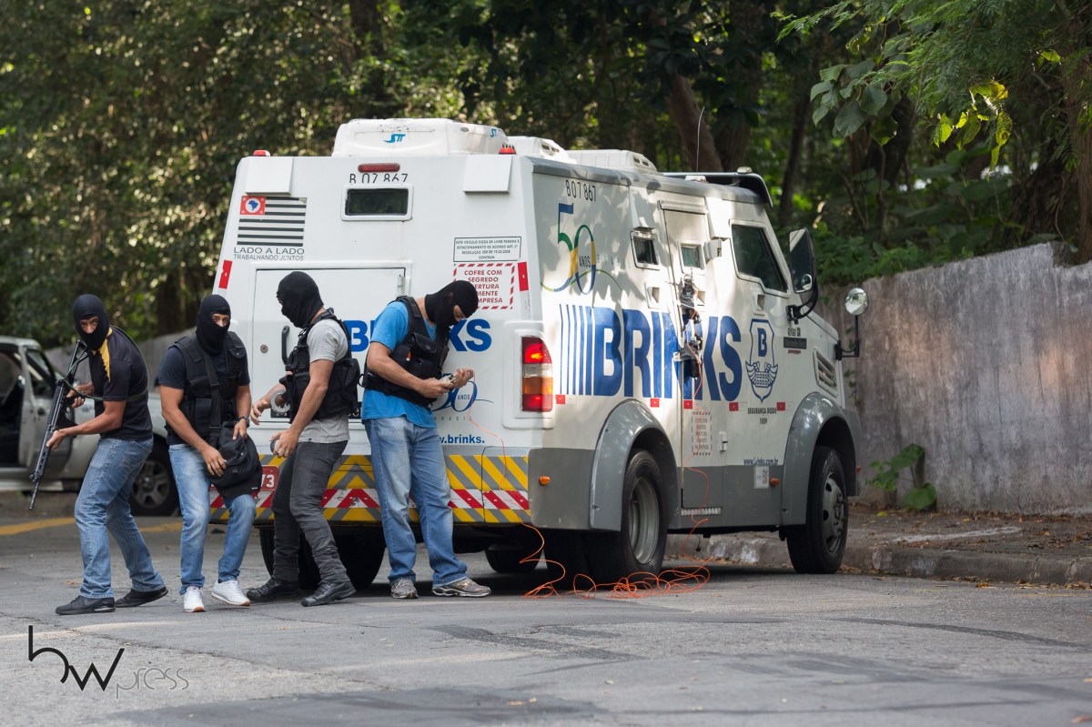 Policiais da ROTA realizam exercício simulado de roubo a carro forte, no bairro do Tremembé, na zona norte de São Paulo (SP), nesta segunda feira (12).