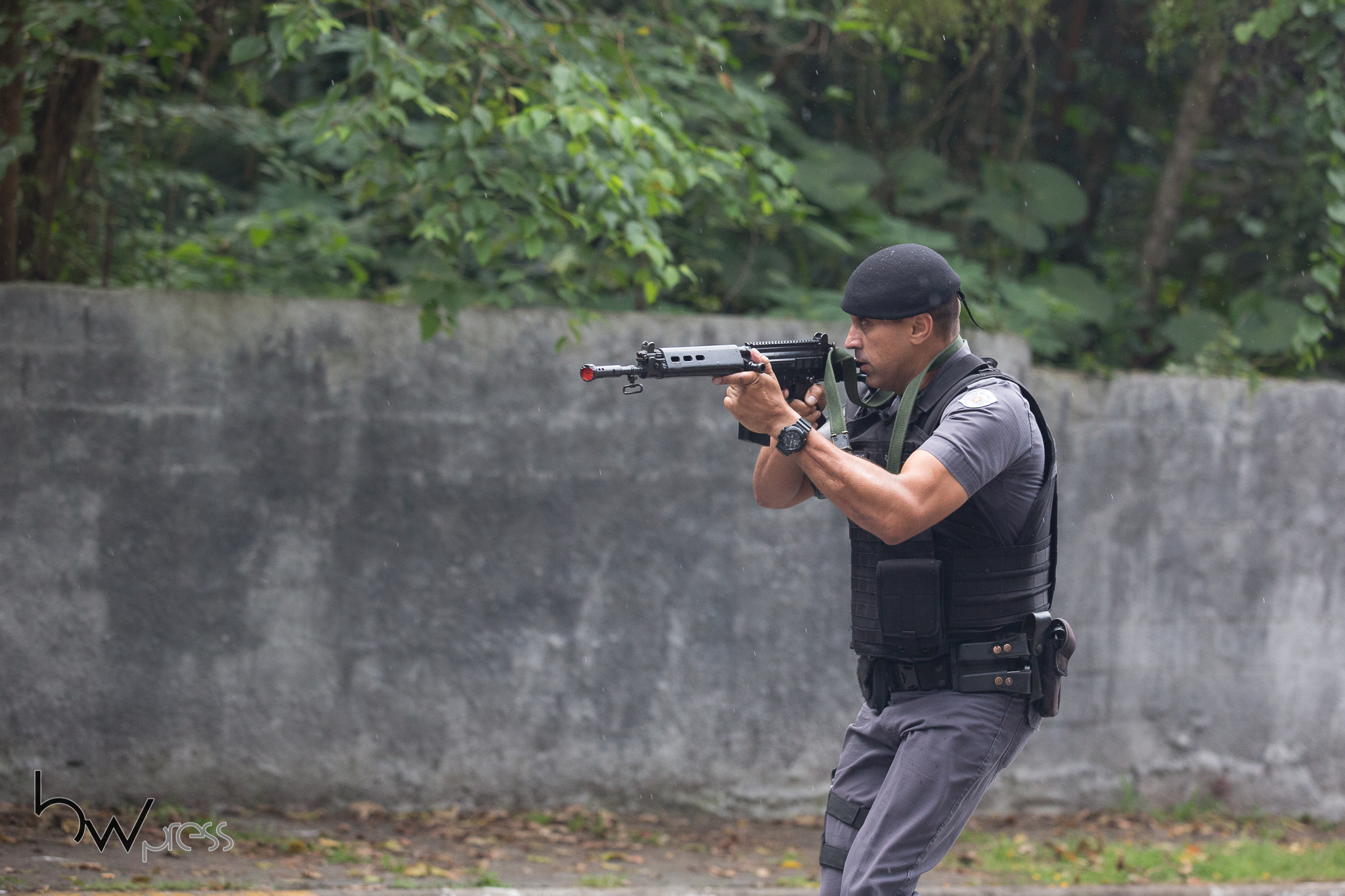 Policiais da ROTA realizam exercício simulado de roubo a carro forte, no bairro do Tremembé, na zona norte de São Paulo (SP), nesta segunda feira (12).