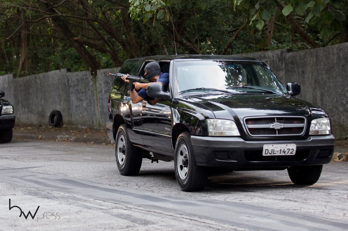 Policiais da ROTA realizam exercício simulado de roubo a carro forte, no bairro do Tremembé, na zona norte de São Paulo (SP), nesta segunda feira (12).