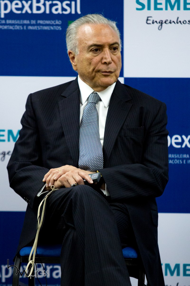 Michel Temer, Presidente do Brasil, participa da cerimônia de assinatura de acordo entre a Agência Brasileira de Promoção de Exportações e Investimentos – APEX e a Siemens, na sede da Associação Comercial de São Paulo (ACSP), nesta terça feira (13).