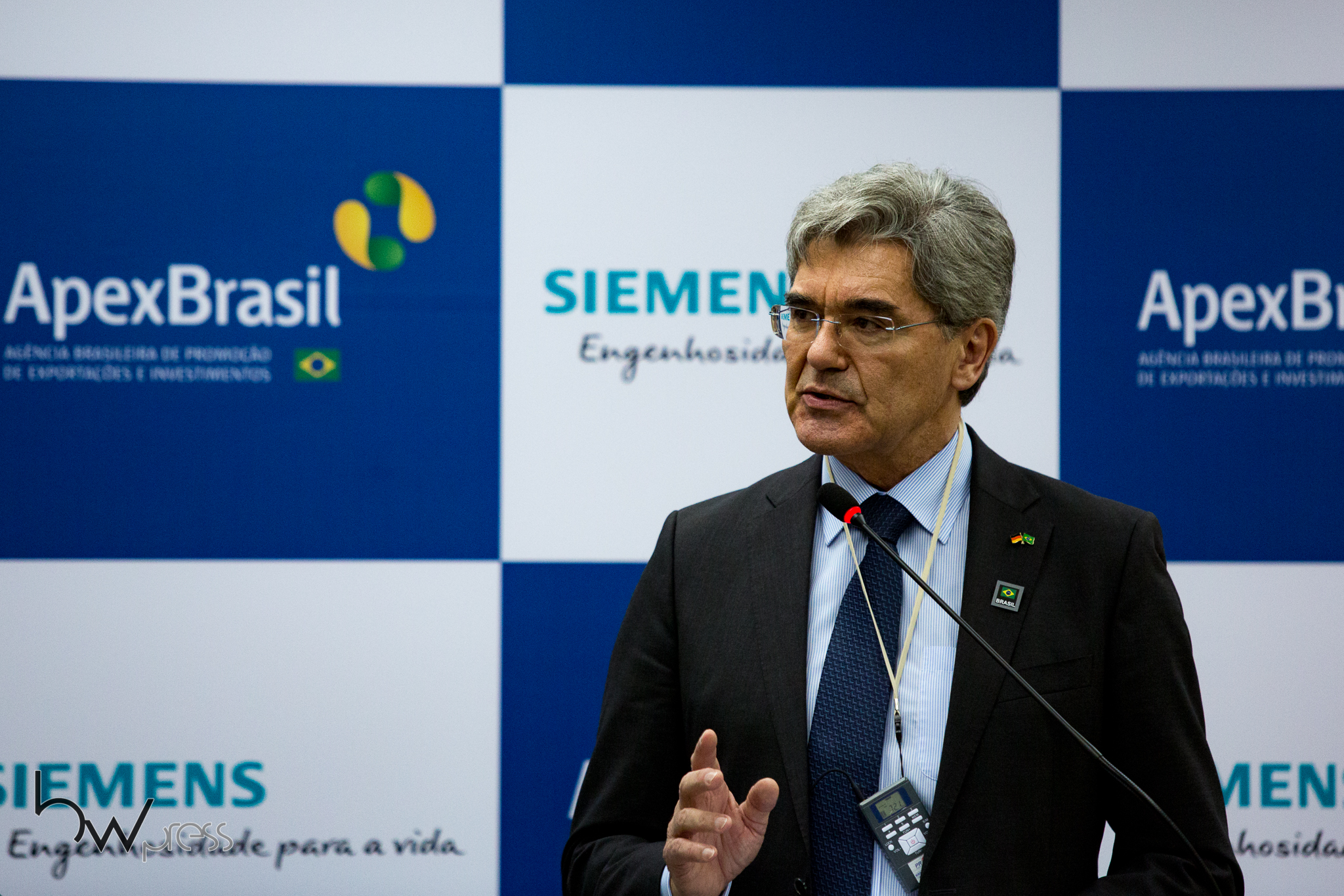 Joe Kaeser, Presidente Global da Siemens, participa da cerimônia de assinatura de acordo entre a Agência Brasileira de Promoção de Exportações e Investimentos – APEX e a Siemens, na sede da Associação Comercial de São Paulo (ACSP), nesta terça feira (13).