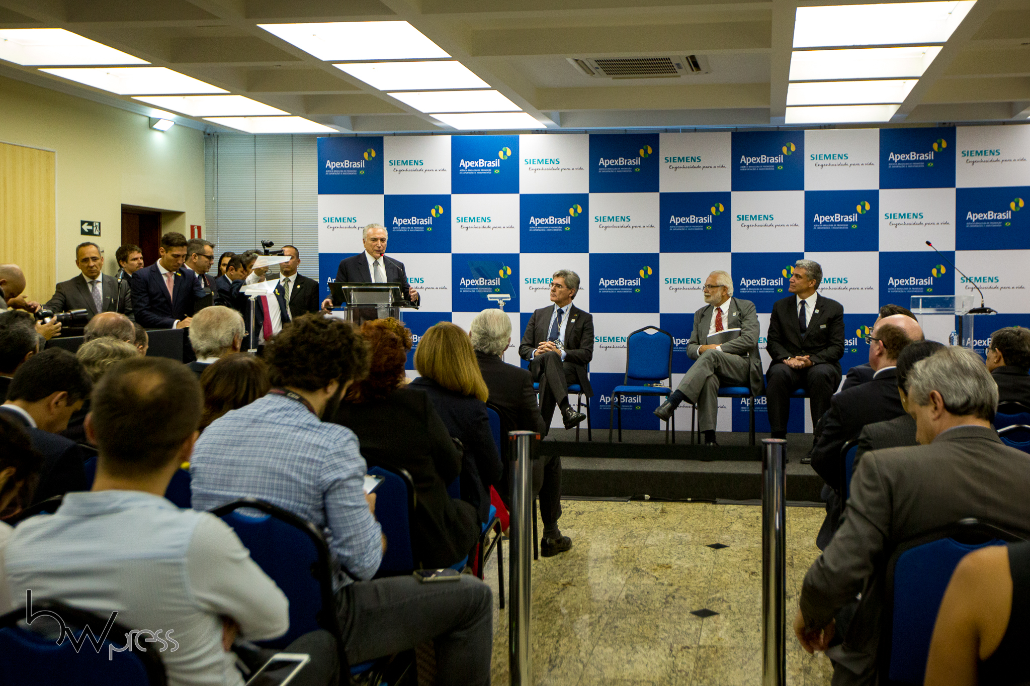 Michel Temer, Presidente do Brasil, participa da cerimônia de assinatura de acordo entre a Agência Brasileira de Promoção de Exportações e Investimentos – APEX e a Siemens, na sede da Associação Comercial de São Paulo (ACSP), nesta terça feira (13).
