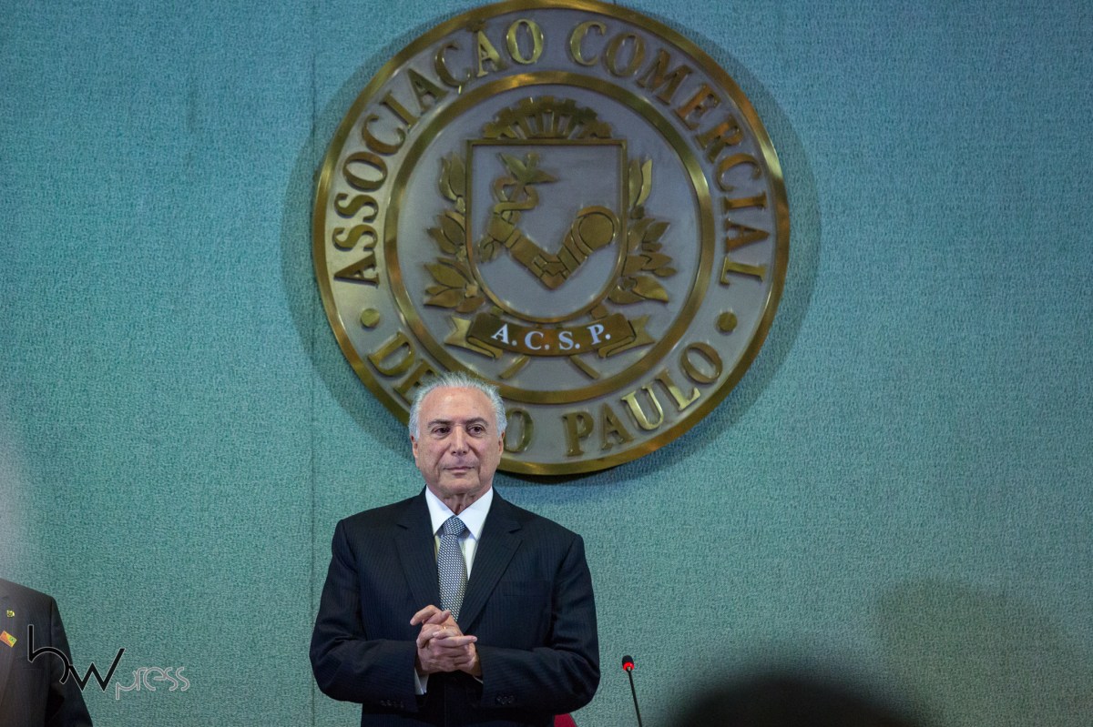 Michel Temer, Presidente do Brasil, participa da cerimônia de abertura da sessão plenária da Federação das Associações Comerciais do Estado de São Paulo, na sede da Associação Comercial de São Paulo (ACSP), nesta terça feira (13).