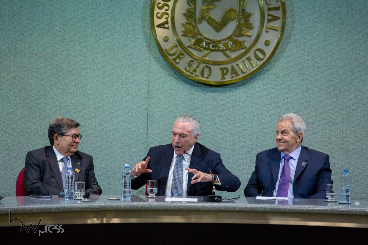 Michel Temer, Presidente do Brasil, participa da cerimônia de abertura da sessão plenária da Federação das Associações Comerciais do Estado de São Paulo, na sede da Associação Comercial de São Paulo (ACSP), nesta terça feira (13).