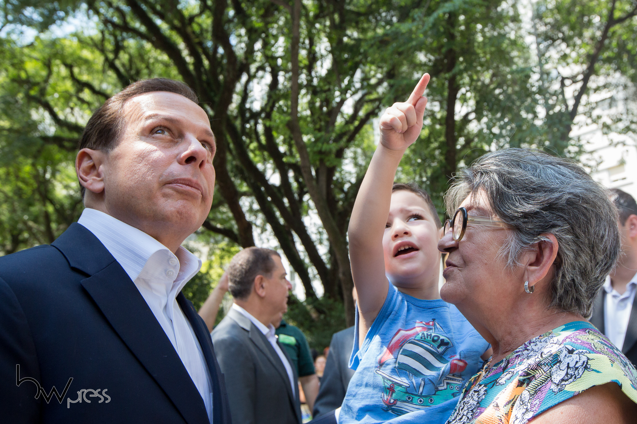 João Doria, prefeito de São Paulo, participa da reinauguração da Praça Gino Struffaldi, conhecida como Praça 14 Bis, no bairro da Bela Vista, região central de São Paulo (SP), nesta segunda feira (19).