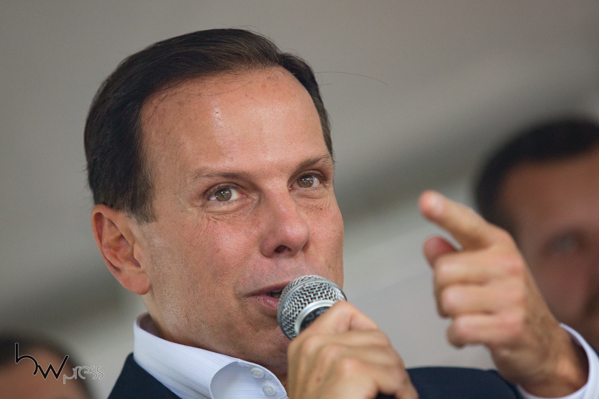 João Doria, prefeito de São Paulo, participa da reinauguração da Praça Gino Struffaldi, conhecida como Praça 14 Bis, no bairro da Bela Vista, região central de São Paulo (SP), nesta segunda feira (19).