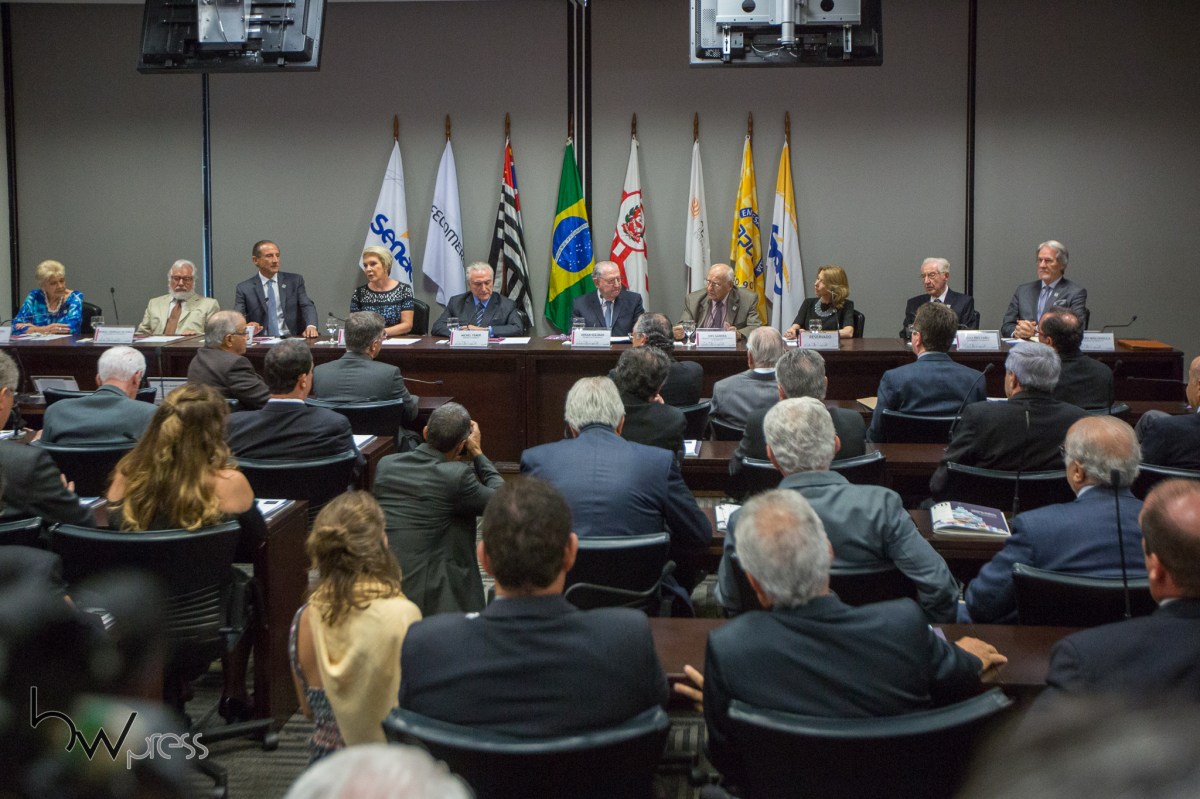 Michel Temer, presidente do Brasil, participa da reunião da diretoria da Federação do Comércio de Bens, Serviços e Turismo do Estado de São Paulo – FECOMERCIO-SP, na região central de São Paulo (SP), nesta segunda feira (26).