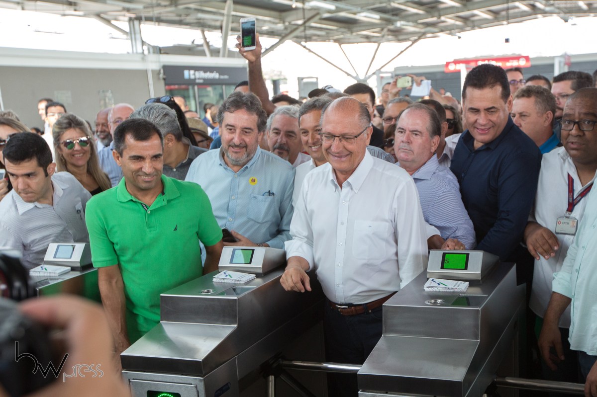 O governador Geraldo Alckmin participa do início de operação da Linha 13 Jade da CPTM, na zona leste de São Paulo (SP), neste sábado (31). Durante o mês de abril, a linha que liga São Paulo ao Aeroporto de Guarulhos funcionará das 10:00h às 15:00h aos sábados e domingos e não haverá cobrança de tarifa.
