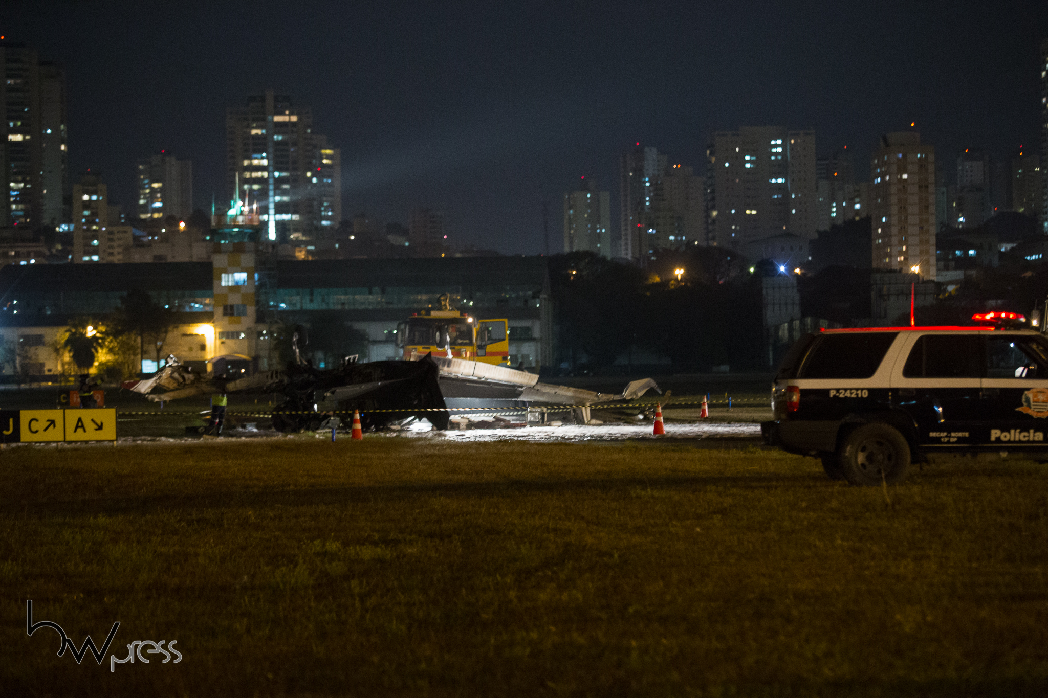 Acidente com avião modelo King Air C90, no Campo de Marte, na zona norte de São Paulo (SP), neste domingo (29).