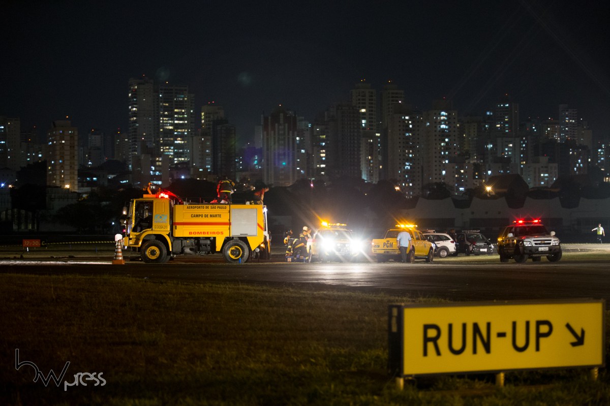 Acidente com avião modelo King Air C90, no Campo de Marte, na zona norte de São Paulo (SP), neste domingo (29).