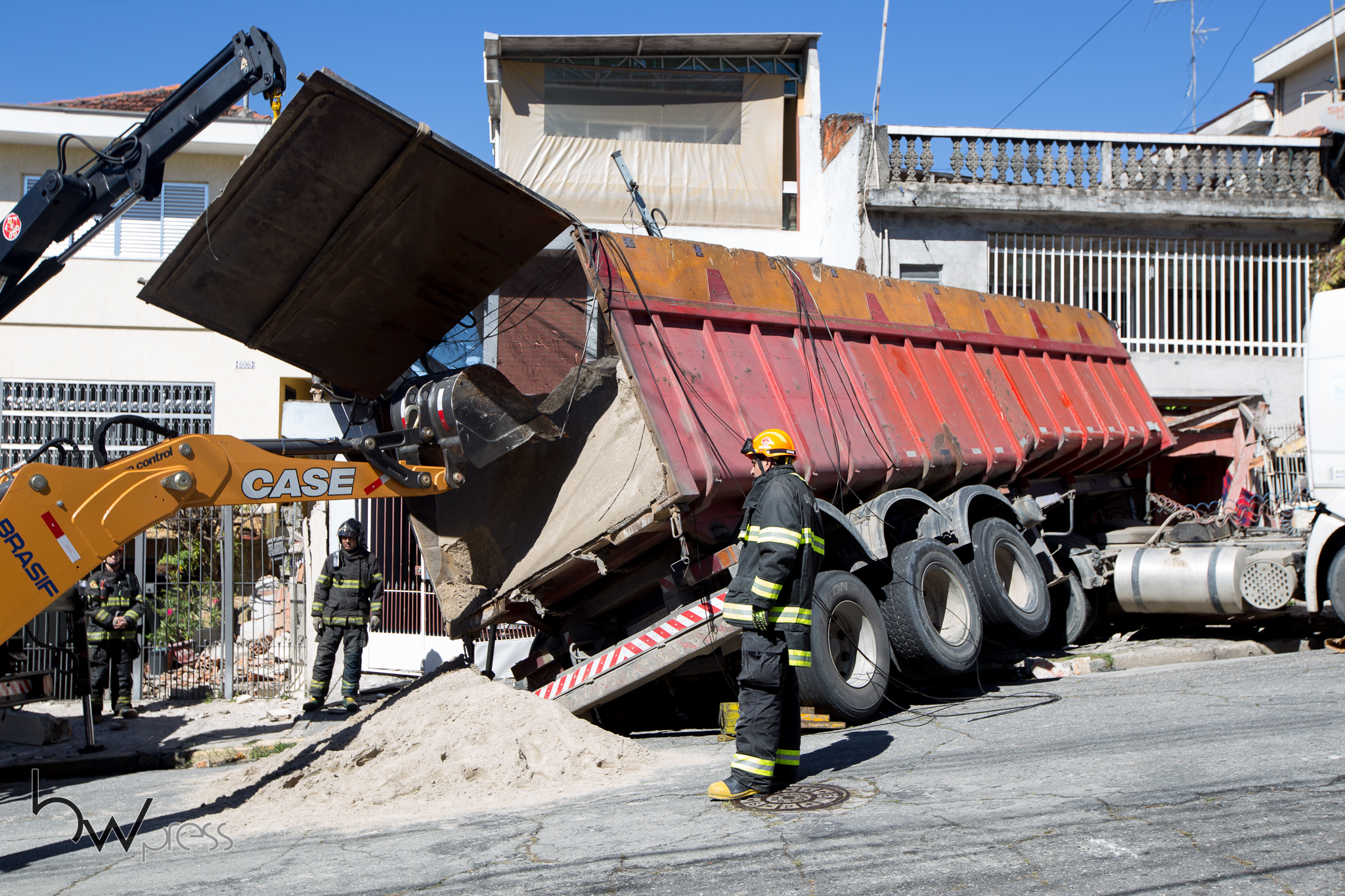 Caminhão carregado com areia perde o controle e atinge 3 residências na Rua Vieira Pinto, na manhã desta sexta feira (10), na zona leste de São Paulo (SP). O motorista informou que em uma subida acentuada, o caminhão patinou e desceu a rua descontrolado.