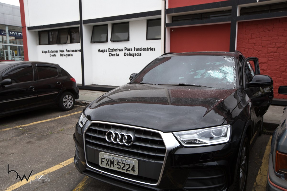 Audi Q3, usado por Cláudio Roberto Ferreira, conhecido como “Galo”, que foi morto com tiros de fuzil na noite desta segunda feira (23), no bairro do Tatuapé, zona leste de São Paulo. Os criminosos dispararam pelo menos 70 vezes contra o veículo blindado da vítima, que era procurada pela justiça e tinha sido condenada a 65 anos de prisão por roubo a banco.